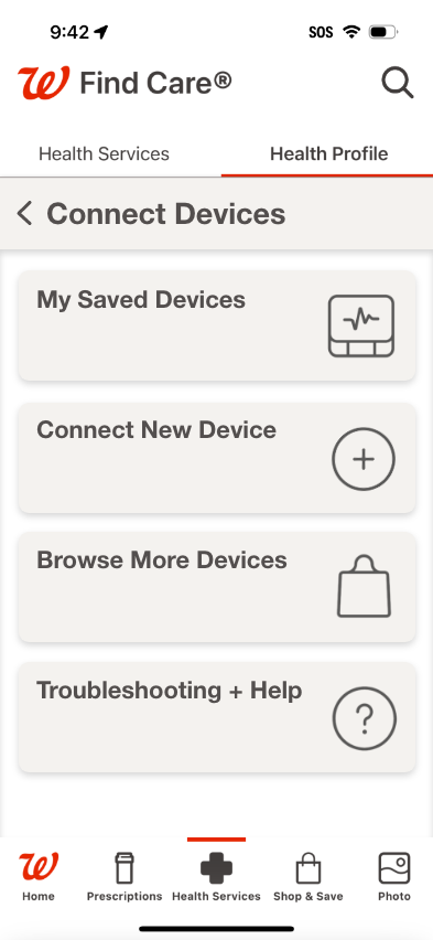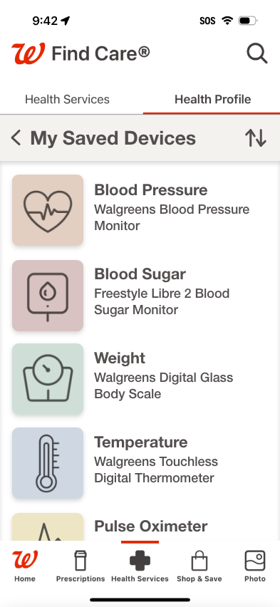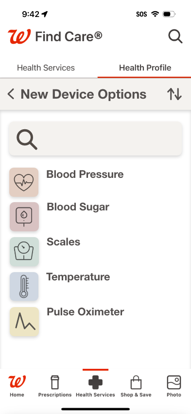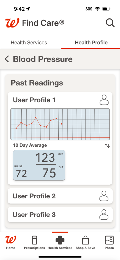 My primary focus; the revision of the current Walgreens mobile application to include a health monitoring section. This would compliment their current collection of at home medical devices as well as the health services already offered within the app.